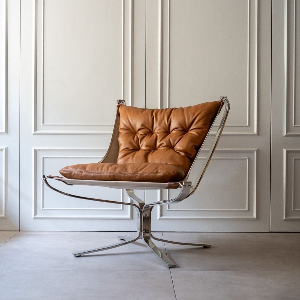 「ファルコンチェア」は1920年ノルウェーに生まれたシガード・レッセルによってデザインされた北欧を代表する名作のラウンジチェア。
